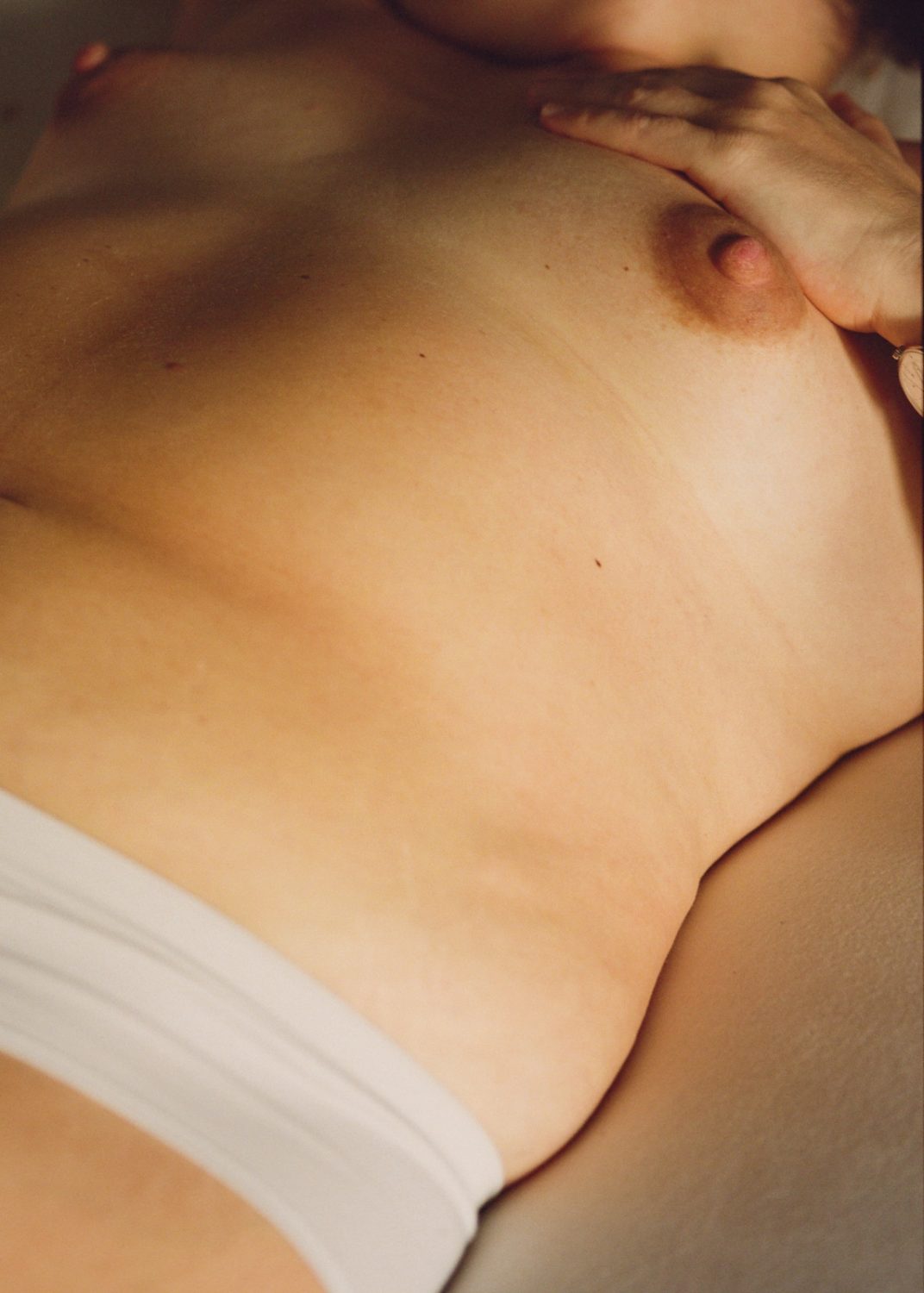Das Wochenbett bezeichnet die Zeit nach der Geburt, in der die Gesundheit von Mutter und Kind sorgfältig überwacht werden muss, da sich beide Körper an die erste Trennung voneinander gewöhnen. Lisa Edi hat in den Tagen unmittelbar nach der Geburt ihres Sohnes eine Reihe von Fotografien angefertigt und andere Frauen vor und nach der Geburt porträtiert, die Aspekte der Mutterschaft zeigen, die außerhalb des häuslichen Umfelds selten zu sehen sind. Diese Bilder zeugen von der Komplexität der Gefühle, die mit einem neugeborenen Baby in die Welt einer Mutter kommen: die Einsamkeit, die daraus entsteht, dass man dringend Zeit für sich selbst braucht; die Abhängigkeit und Verletzlichkeit, die man erfährt, wenn man plötzlich ein anderes Leben in den Händen hält. Mutterschaft wird oft als ein unkomplizierter, glücklicher Teil des Lebens dargestellt, aber damit dieses Bild aufrechterhalten werden kann, müssen bestimmte Tatsachen verschleiert werden. In Mütter: An Essay on Love and Cruelty schreibt Jacqueline Rose, dass "die meisten körperlichen Erfahrungen von Frauen, von der Menstruation über die Schwangerschaft bis zu den Wechseljahren, unterschiedslos als eine Form von Schwäche oder Krankheit angesehen werden: zu viel Blut und Eingeweide, Körper, die entweder zu nass oder zu trocken sind, Körper, bei denen die Grenzen zwischen innen und außen auf unbequeme Weise verschwimmen." Fotografien wie die von Lisa Edi bringen das Unsagbare ins Blickfeld. Auf weichem, weißem Stoff - normalerweise ein Zeichen für perfekte Sauberkeit und frische Gerüche - fließen Körperflüssigkeiten ungehindert und unapologetisch. Und doch wird die Palette der Pastellfarben nicht von den viszeralen Realitäten von Fäkalien, einer durchtrennten Nabelschnur und der Figur nach der Geburt überlagert. Stattdessen zeugt diese Fotoserie von der Widerstandsfähigkeit einer Beziehung und der Fähigkeit einer Mutter, der Gewalt des Gebärens zu widerstehen. Indem die Fotografin ihr eigenes Wochenbett und das anderer Frauen dokumentiert, setzt sie das Bild der Mutterschaft gezielt neu zusammen, um nicht nur die weiche Haut und das zuckersüße Etwas zu zeigen, sondern auch das Ungenießbare und das Unvermeidliche - die es allein schon deshalb verdienen, sichtbar zu sein.