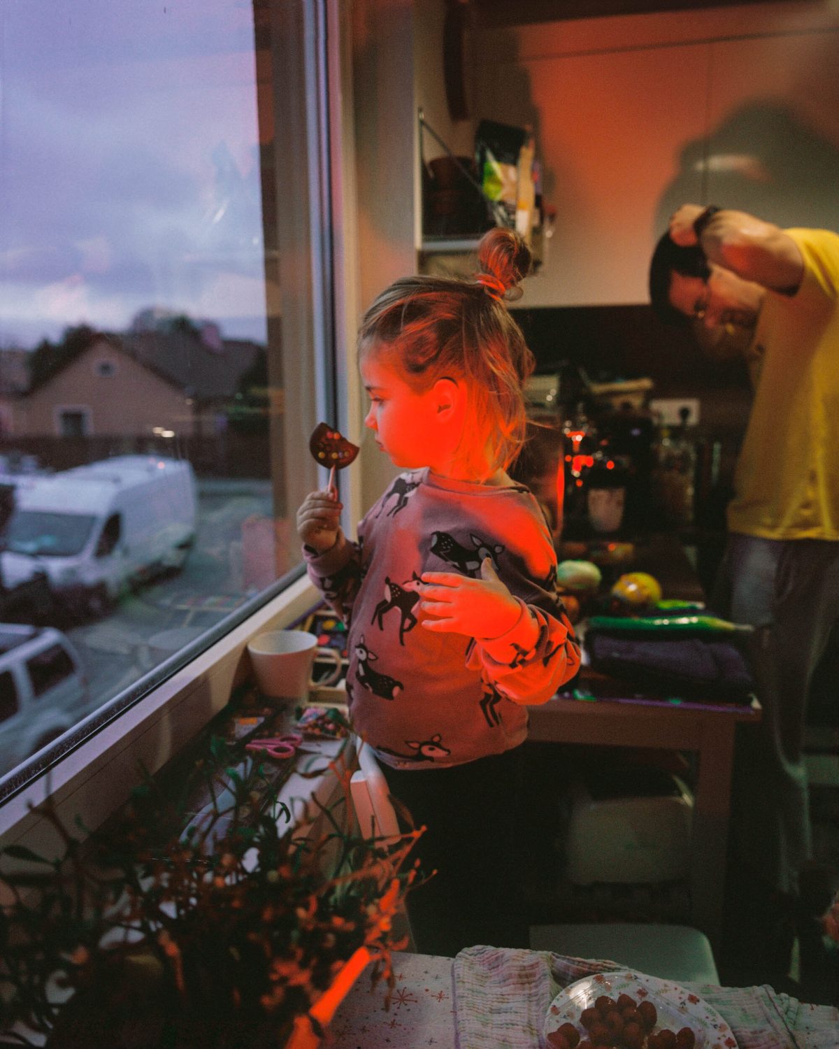 Persönliche Autonomie ist die Fähigkeit, für sich selbst Entscheidungen zu treffen und das eigene Leben zu gestalten, oft unabhängig von bestimmten moralischen Inhalten. Aber wie können wir beurteilen, ob unsere Entscheidungen immer richtig sind? Meine Fotografien halten die sich ständig verändernde Beziehung zu meiner heranwachsenden Tochter und meiner Familie fest, eingerahmt von zyklischen Rückblicken in meine eigene Kindheit. Eine meiner Kindheitserinnerungen bezieht sich auf das Überleben mit meiner Familie während des versuchten Augustputsches (Avgustovskiy Perevorot) in Moskau 1991. Wir sahen ständig das staatliche Fernsehen, wo »Schwanensee« in einer Schleife lief. Vielleicht sollte das Ballett die Zuschauer:innen ablenken und beruhigen, aber es wurde zutiefst mit politischer Instabilität assoziiert und hinterließ einen bleibenden Eindruck auf mein Verständnis von Heimat und Sicherheit. Meine Arbeit ist tief in Kindheitserinnerungen und Erfahrungen während der Auslandsaufenthalte mit meinen Eltern verwurzelt. Ich erforsche Themen der Identität und des Konzepts von »Heimat«, indem ich mich mit unverarbeiteten Momenten der persönlichen, familiären und kollektiven Erinnerung auseinandersetze. Ausgehend von der Umgebung meiner Familie und den soziopolitischen Situationen der Vergangenheit und Gegenwart, wirft meine Arbeit tiefgreifende Fragen über das Zusammenspiel von Erinnerung und Identität auf.